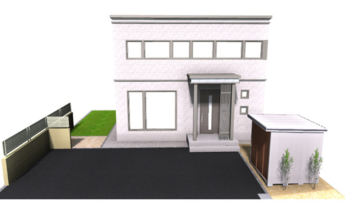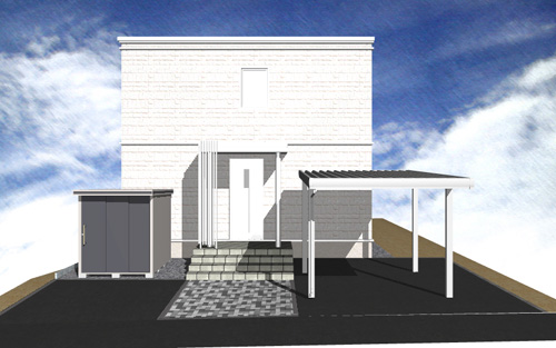 S市 D様邸 カーポート アスファルト舗装 インターロッキング 物置 |